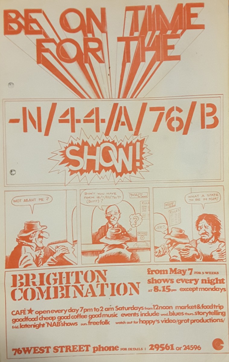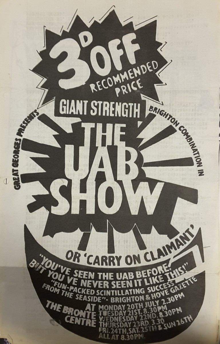 Their main income came from the café, which they ran and managed along with everything else: theatre, discos, films and poetry readings. They ‘…were looking to find a context for theatre to happen that wasn’t in a conventional performance space.’ (Noel Greig) The Brighton Combination was the first alternative theatre company that had its own building with its own ensemble.